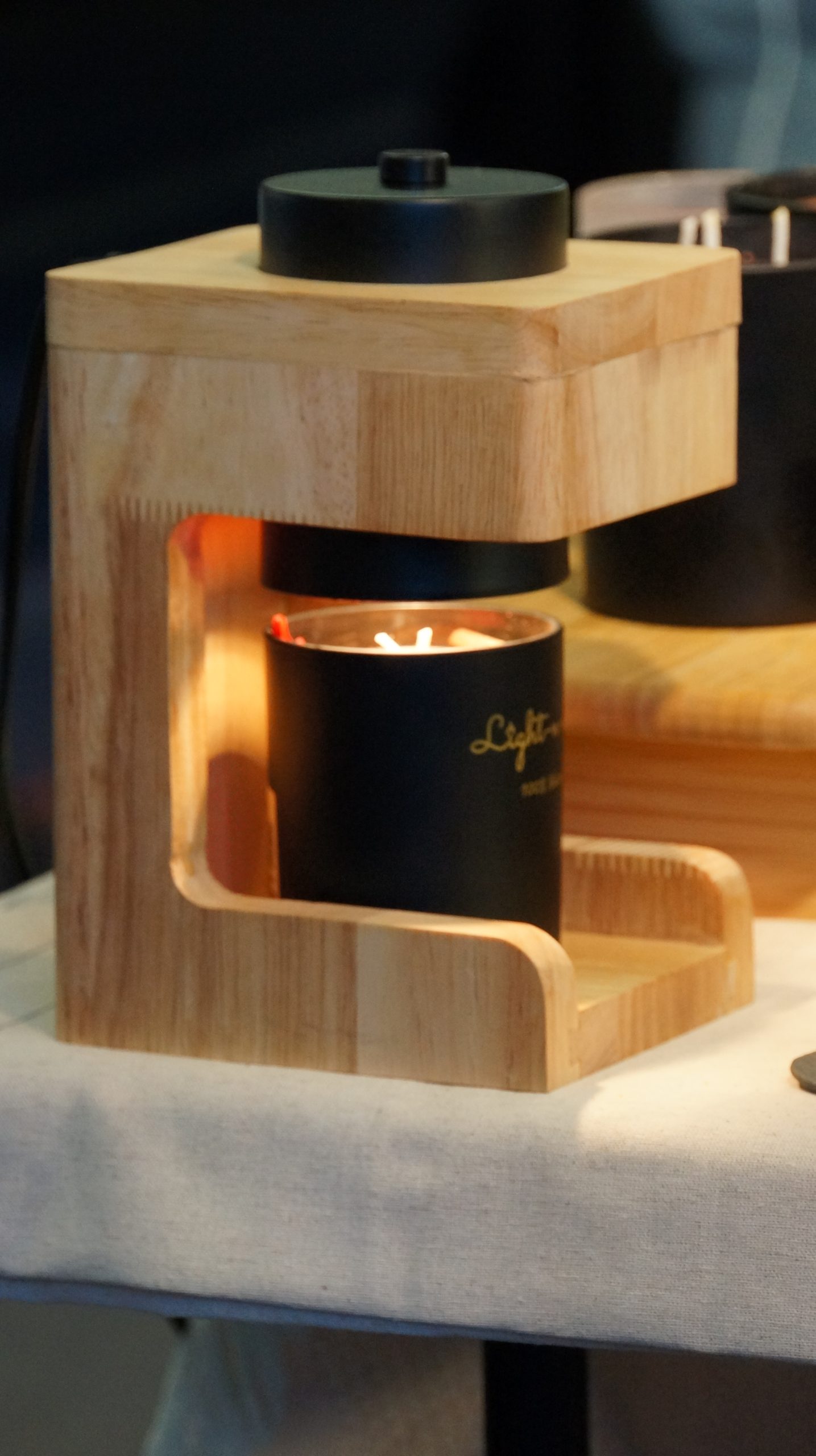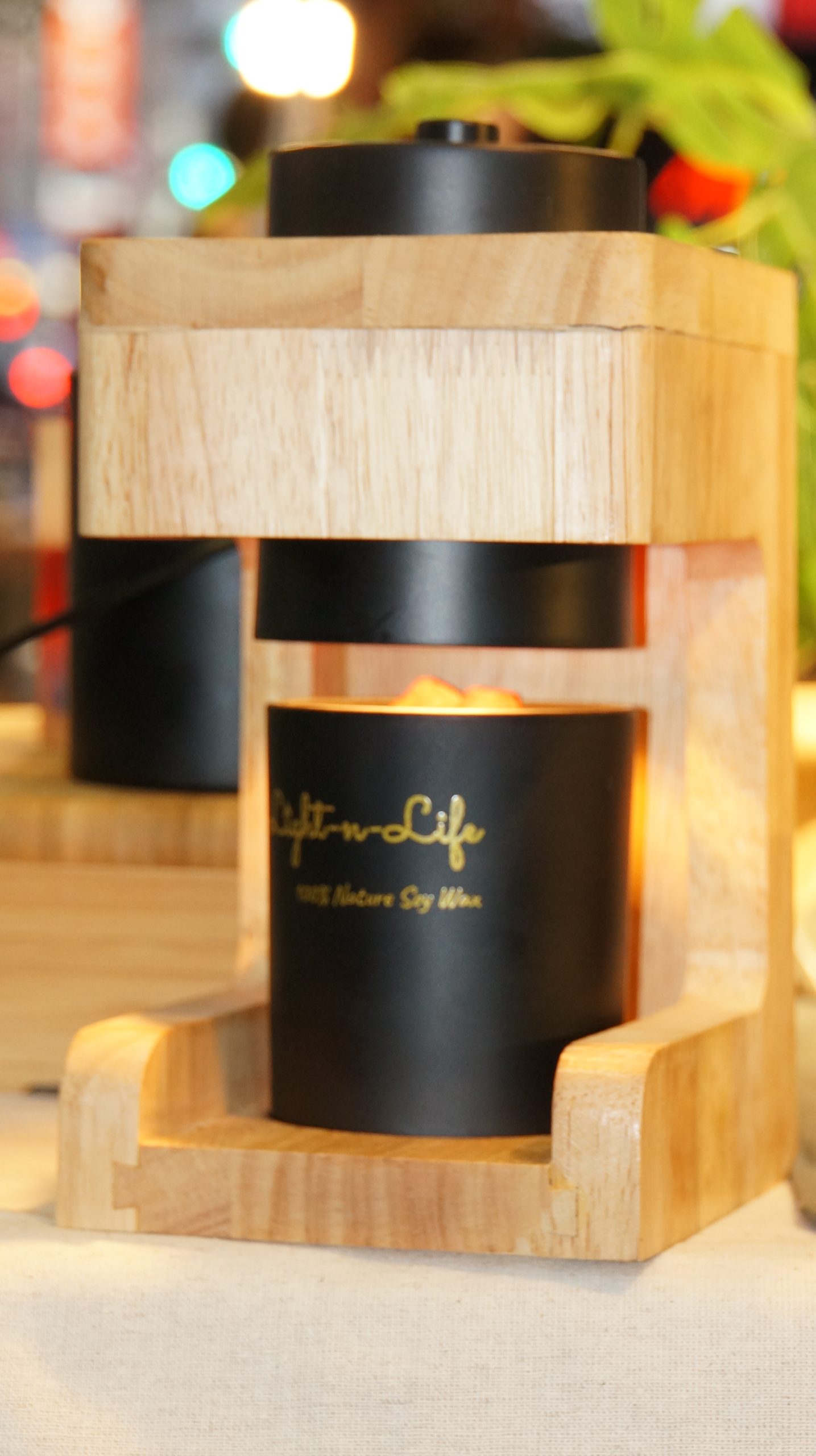 Light-n-Life 獨家手工日式風格融蠟燈以泰國橡木為材料,完全以人工方式打磨製作, 採用鳩尾榫工藝接合技術, 與坊間大量機器生產, 僅以膠水黏合製作或者用鐵釘拼接的產品相比, Light-n-Life 融蠟燈具備更堅固耐用及安全的特性, 為了有效提升融蠟效能, Light-n-Life 將融蠟燈泡與香氛蠟燭罐的距離規範在1-2CM距離, 因此可以採用低瓦數的35W融蠟燈專用燈泡,以較安全的低溫, 來達到融蠟釋放香氛的效果, 而功能完整的調光器,可提供三段不同溫度調整,並可設定2-8小時自動關機功能!