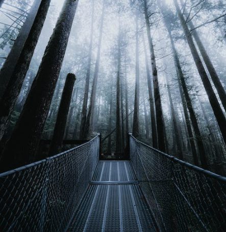 探索旅館外的森林小徑,西部紅雪松和太平洋銀杉的木質氣息與惠斯勒雲杉和潮濕森林地面上的燒焦樹林一起編織出一條小徑。